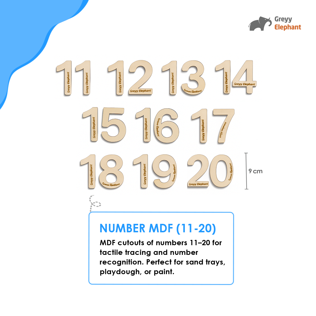 This set features Number Flashcards (11–20) paired with sturdy MDF cutouts for each number, making abstract concepts tangible. Ideal for tactile learners, this combo strengthens number recognition, counting, and sequencing through hands-on play.