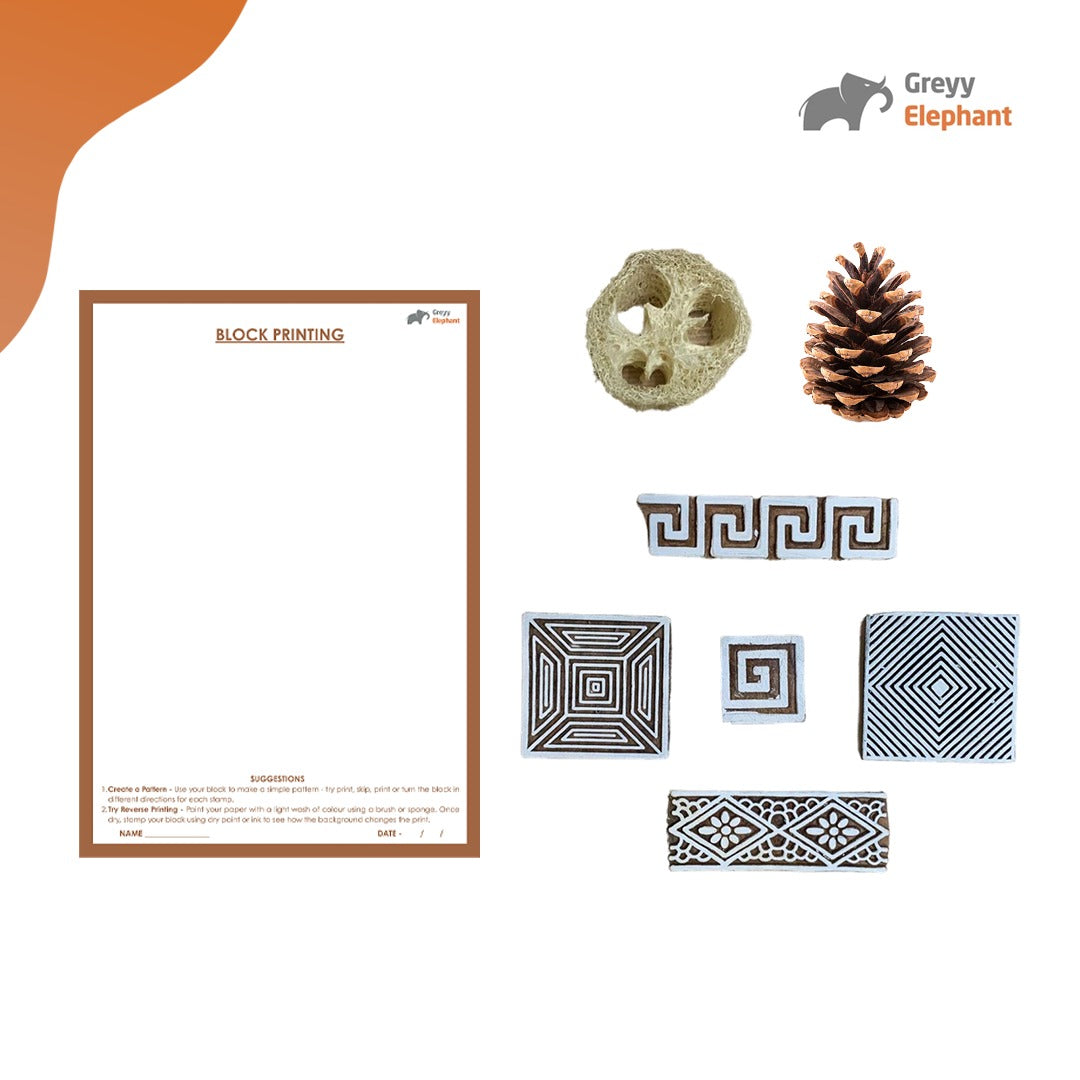 Unleash creativity with our Printing Combo, a beautiful blend of nature-inspired and geometric wooden blocks designed for little hands. Children explore textures, symmetry, and spatial awareness while creating stunning prints using paint, pinecones and loofah.