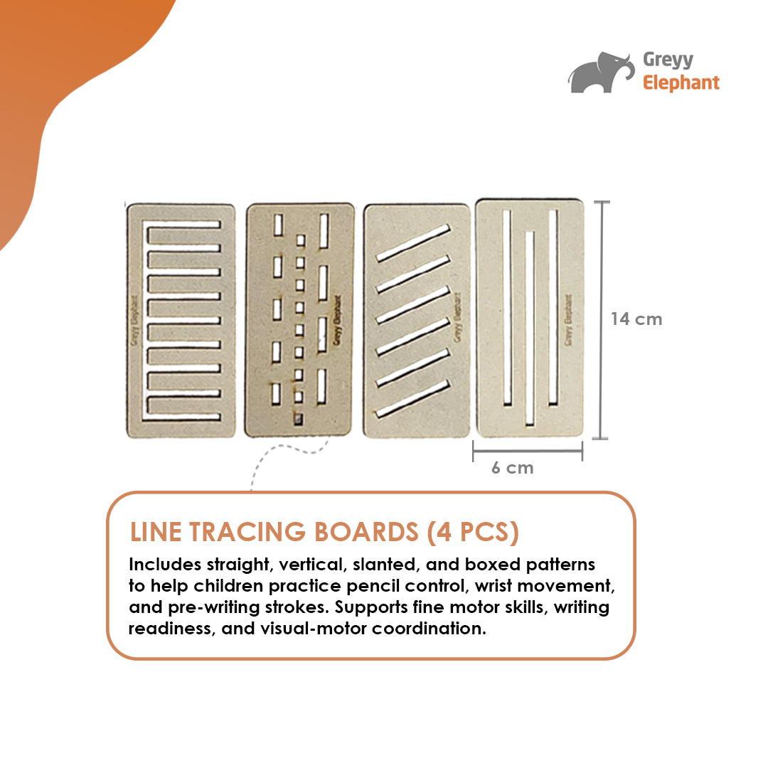 Encourage early writing skills with our Tracing and Writing Combo featuring durable wooden stencils for repeated line practice and paper maze + tracing worksheets to boost pencil control, focus, and spatial awareness. A perfect toolkit for developing fine motor skills and pre-writing confidence through engaging, hands-on play!